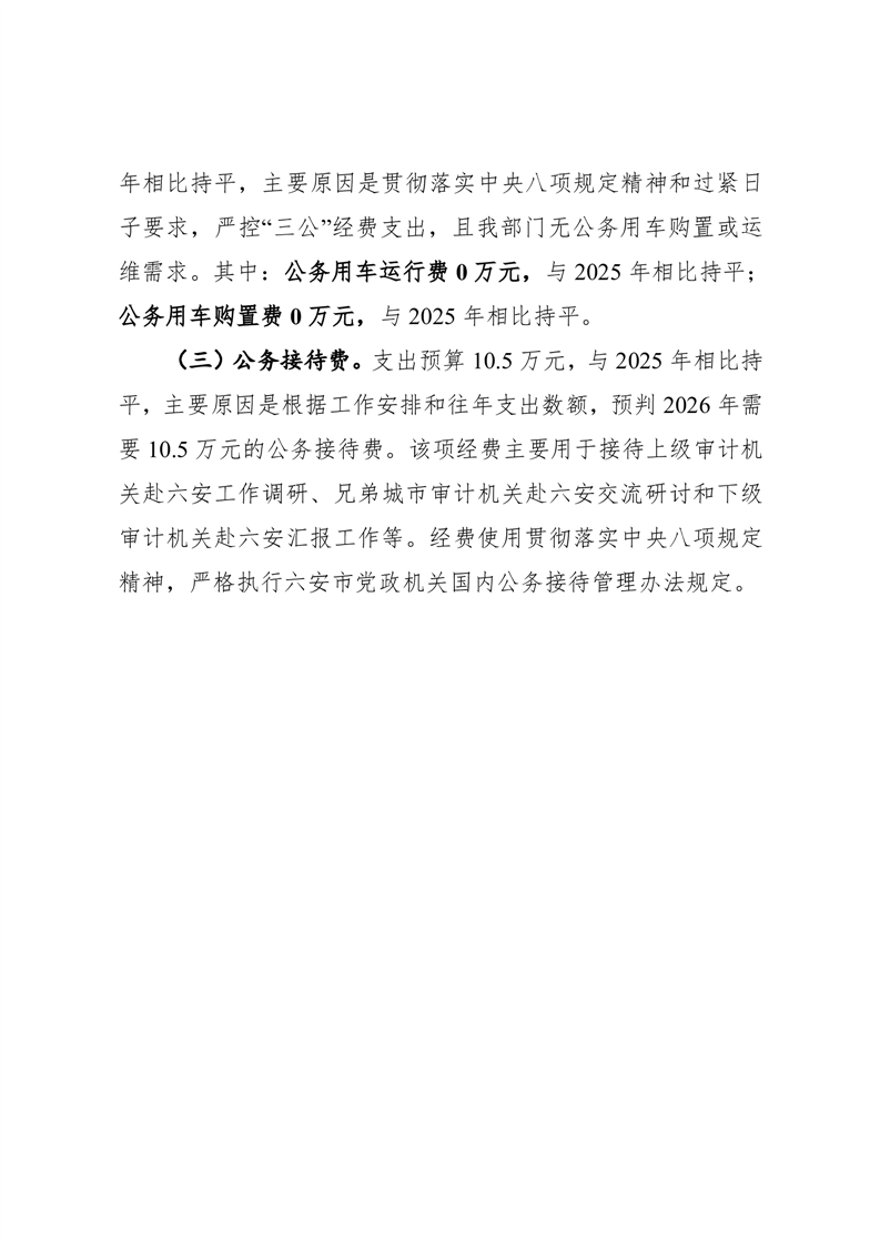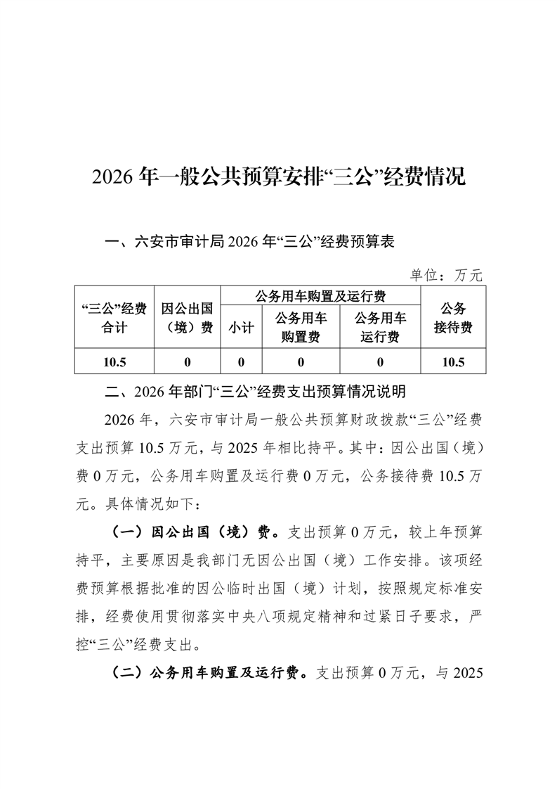 六安市审计局2026年一般公共预算安排“三公”经费情况